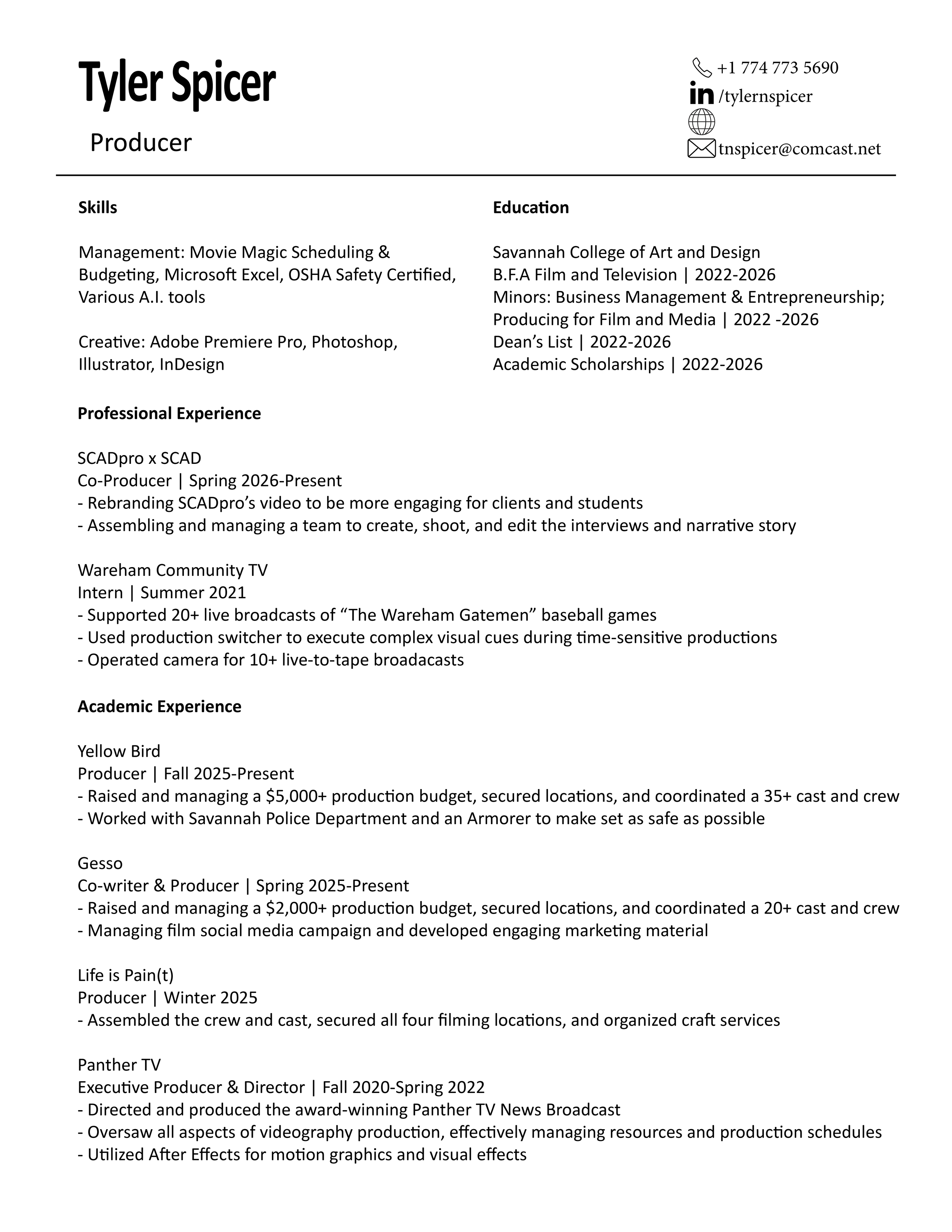 Raised and managing a $5,000+ production budget, secured locations, and coordinated a 35+ cast and crew. Worked with Savannah Police Department and an Armorer to make set as safe as possible. Cast Two child actors through an agency in Atlanta, GA.