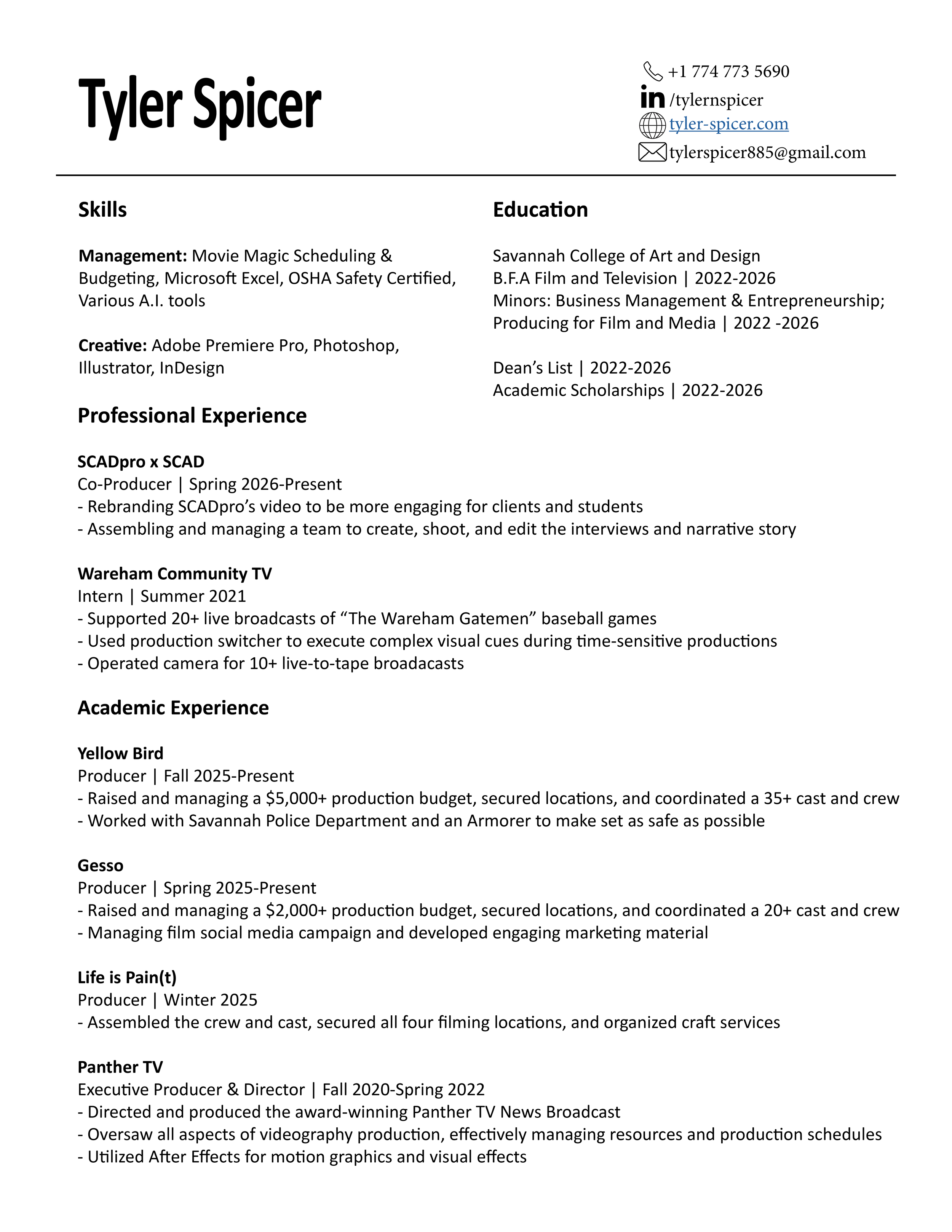 Raised and managing a $5,000+ production budget, secured locations, and coordinated a 35+ cast and crew. Worked with Savannah Police Department and an Armorer to make set as safe as possible. Cast Two child actors through an agency in Atlanta, GA.